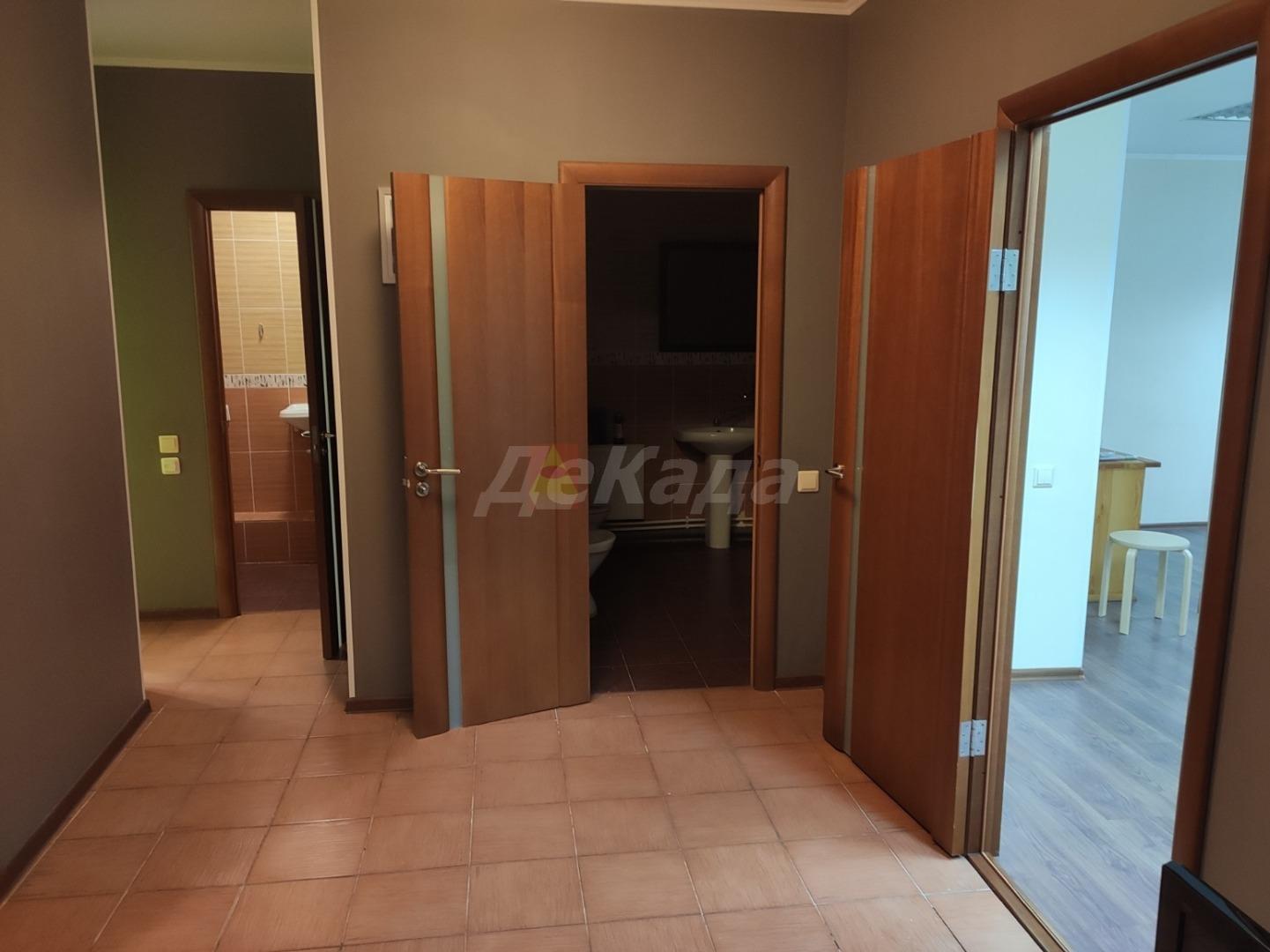 Сдаётся в аренду офисное помещение площадью 96 кв.м. Оборудовано сигнализацией, два санузла. Есть балкон. Находится на первом этаже.